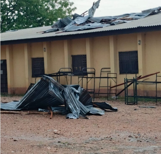 By: Admin A heavy rainstorm has destroyed properties worth millions of naira at the Kwara State National Youth Service Corps, NYSC Permanent Orientation Camp, Yikpata. The incident was confirmed by the Public Relations Officer for the Kwara NYSC, Mr. Oladapo Morakinyo, to newsmen in Ilorin. According to Mr. Morakinyo, the incident occurred around 4:30 pm on Saturday, April 26. He said some structures, including the administrative block, camp mosque, market, kitchen, and multipurpose hall were adversely affected. Also, vehicles belonging to some staff members were damaged, with roofs blown off, and a big tree was uprooted, but no lives were lost in the incident. Staff cars damaged by the rainstorm Meanwhile, the Kwara State Commissioner for Youth Development, Mallam Shehu Ndanusa, and the Etsu of Tsaraji, Alhaji Aliyu Abdullahi, visited the camp to commiserate with staff and corps members and assess the level of damage. Images obtained show the extent of the destruction. Post navigation Defection: Opposition heartbroken over coalition failure – Presidency Kidnapped Oke – Ero LGA Workers regain Freedom