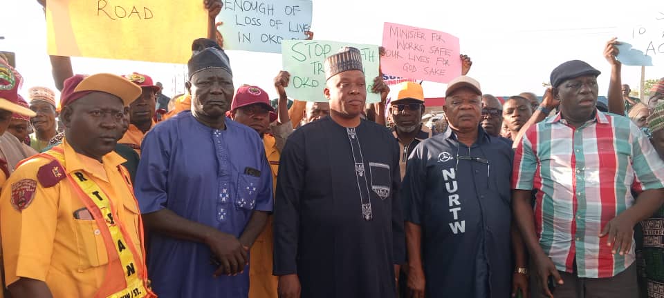 Call for construction of pedestrian and overhead bridges to enhance safety By Admin: Transport unions and residents of Oko-Olowo community in Ilorin, Kwara State, have appealed to both the Federal and Kwara State Government to, as a matter of urgency, restore speed breakers on the Oko-Olowo expressway. They made the appeal during a peaceful protest staged on wednesday morning by members of the National Union of Road Transport Workers NURTW, Road Transport Employers Association of Nigeria RTEAN, and concerned residents of the area, following the removal of the speed breakers by contractors handling a road project along Ilorin-Jebba Expressway. Speaking at the event, the Kwara State Chairman, NURTW, Alhaji Abdulrasak Ariwoola, represented by the union’s secretary, Comrade Aliyu Rasheed, lamented the rising cases of fatal accidents following the removal of speed breakers on the busy expressway Alhaji Ariwoola appealed to the government to not only reinstall the speed breakers but also construct pedestrian and overhead bridges to enhance safety. Similarly, the State Chairman, Road Transport Employers Association of Nigeria, Alhaji Abdulrahman Onikijipa, described the speed breakers as lifesaving infrastructure initially installed by the Kwara State government in response to repeated accidents that had claimed many innocent lives. Alhaji Onikijipa who described the removal of the speed breakers as reckless and inconsiderate, called for adherence to safety measures during road projects. A portion of the road showing removal of speed breaker Joint community associations represented by Jamiu Sulaimon and Tajudeen Modupe, emphasized the need for urgent intervention from the Federal Government to prevent further tragedy, ensure safety of commuters and pedestrians. The unions and residents threatened to mobilize their members nationwide and continue to stage daily or weekly protest until their demands are met. The protesters who conducted themselves peacefully carried placards bearing various inscriptions including “Our lives matter at Oko olowo,” “We voted for peace and progress not for loss of lives,” and “We want temporary measures now.” Post navigation Fire engulfs 10 housing units and shops in Kwara Tribute continues to pour in as Oludofian Oba Omikunle laid to rest
